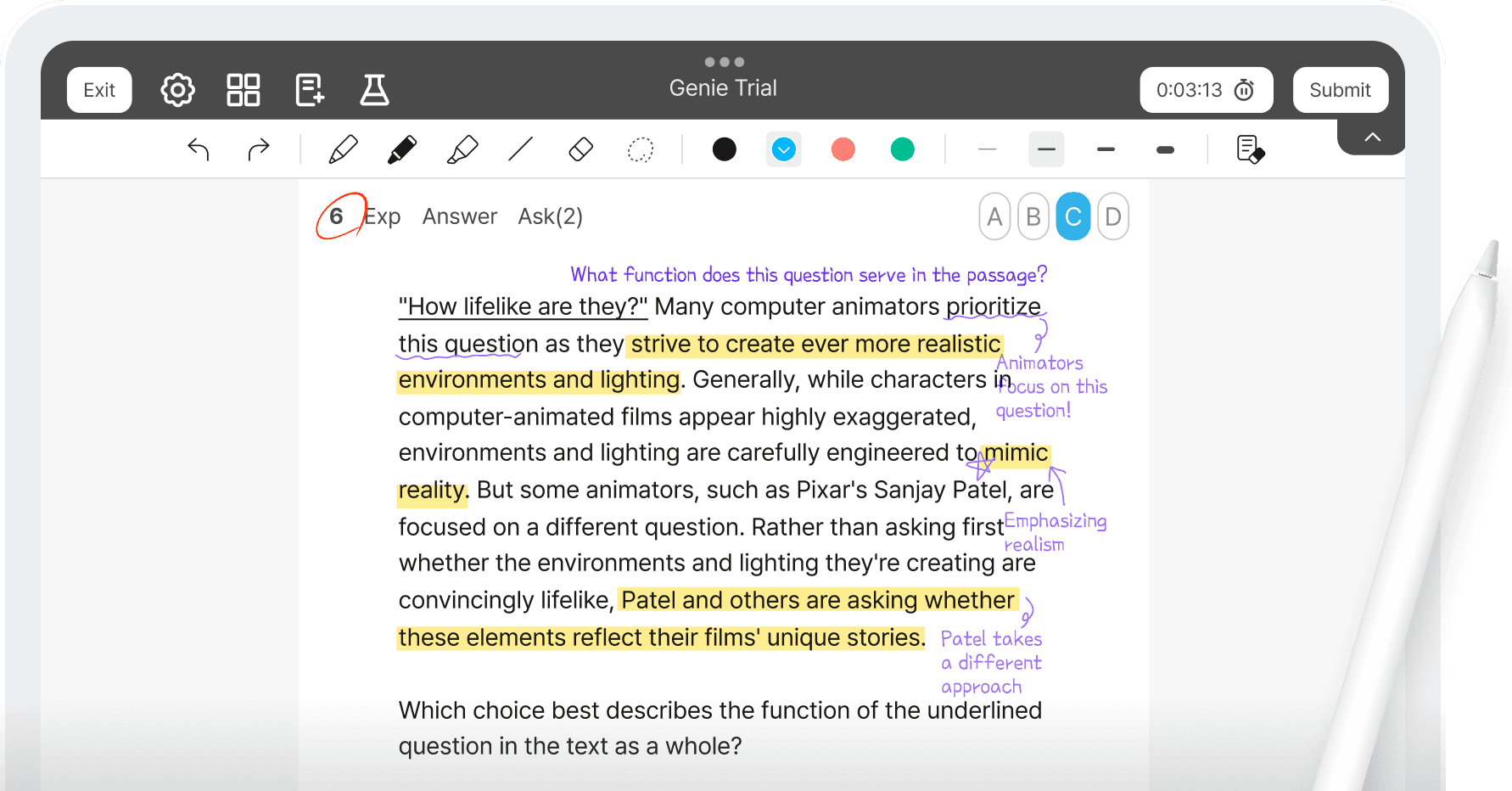 "TestGenie’s realistic FLE’s and Drill Master series helped me boost my scores. I used Quick Modules during my commute and Drill Master for weekend deep dives. A game changer for SAT prep!"